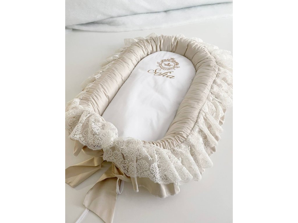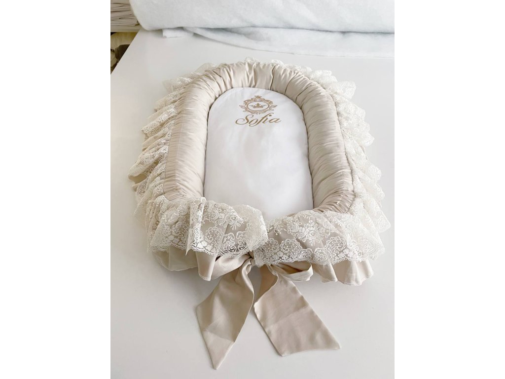 Naše Prémiové hnízdo s krajkou a stuhou je ideálním místem pro vaše miminko, navržené pro maximální pohodlí a bezpečí. Díky promyšlenému tvaru a měkké výplni poskytuje útulný a chráněný prostor, který pomáhá dítěti cítit se klidně, jako by bylo v maminčině náručí.