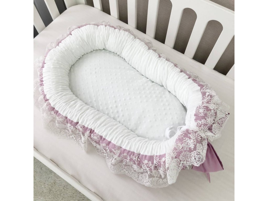 Naše prémiové hnízdo s krajkou a stuhou je ideálním místem pro vaše miminko, navržené pro maximální pohodlí a bezpečí. Díky promyšlenému tvaru a měkké výplni poskytuje útulný a chráněný prostor, který pomáhá dítěti cítit se klidně, jako by bylo v maminčině náručí.