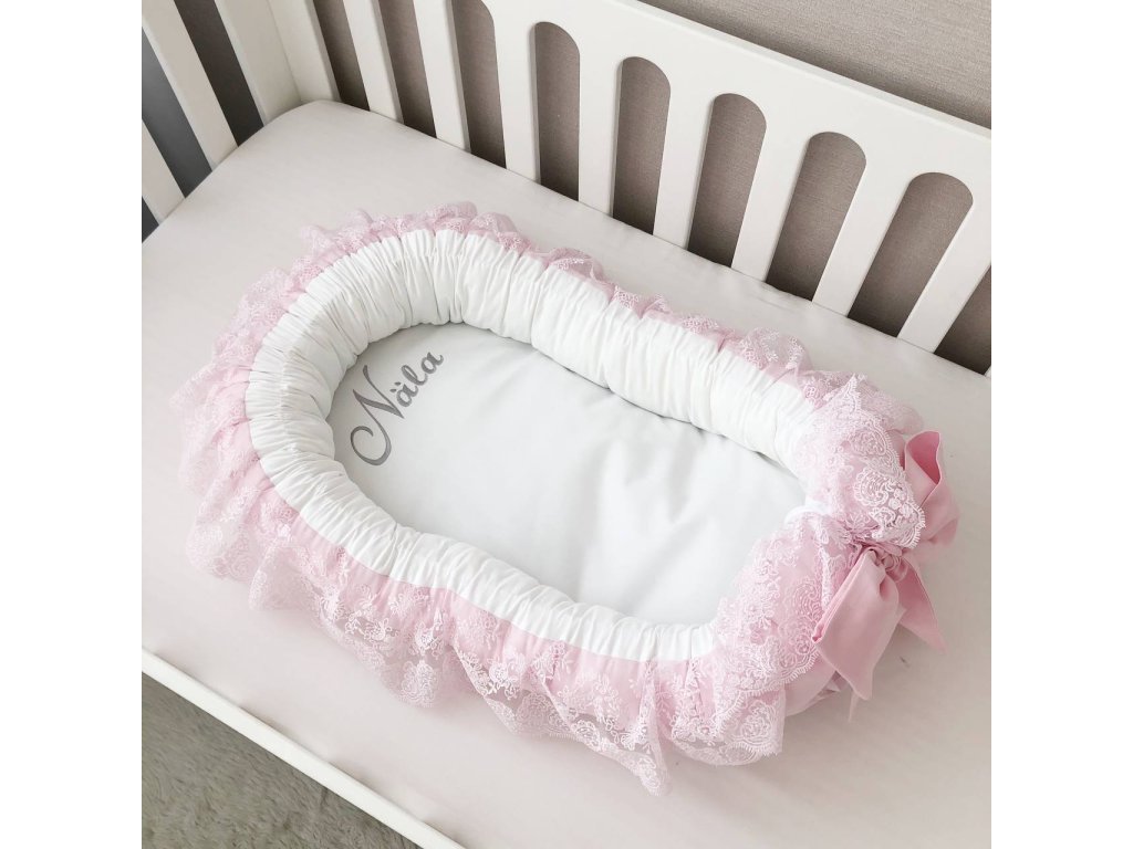 Naše prémiové hnízdo s krajkou a stuhou je ideálním místem pro vaše miminko, navržené pro maximální pohodlí a bezpečí. Díky promyšlenému tvaru a měkké výplni poskytuje útulný a chráněný prostor, který pomáhá dítěti cítit se klidně, jako by bylo v maminčině náručí.