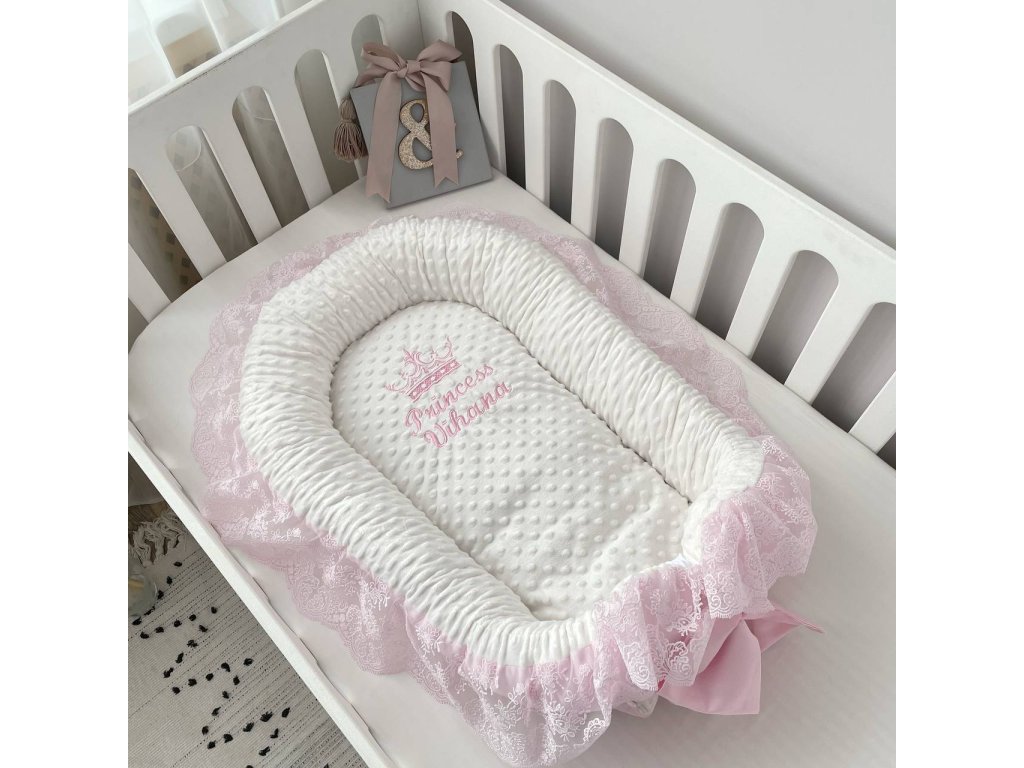 Naše prémiové hnízdo s krajkou a stuhou je ideálním místem pro vaše miminko, navržené pro maximální pohodlí a bezpečí. Díky promyšlenému tvaru a měkké výplni poskytuje útulný a chráněný prostor, který pomáhá dítěti cítit se klidně, jako by bylo v maminčině náručí.