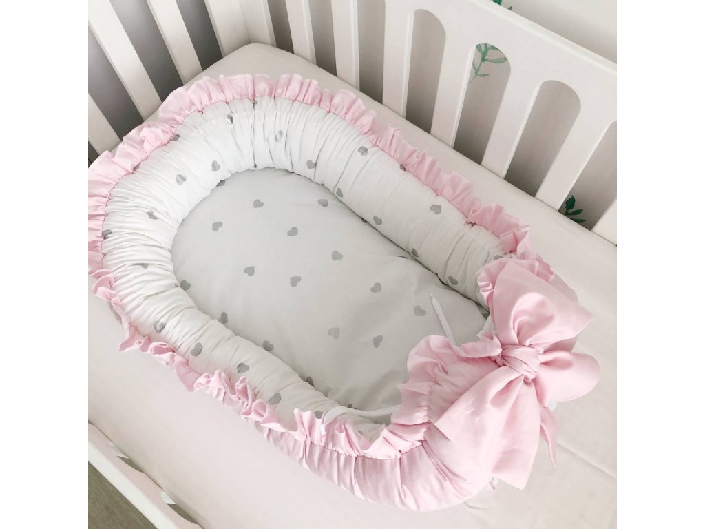 Naše hnízdo s volanem je ideálním místem pro vaše miminko, navržené pro maximální pohodlí a bezpečí. Díky promyšlenému tvaru a měkké výplni poskytuje útulný a chráněný prostor, který pomáhá dítěti cítit se klidně, jako by bylo v maminčině náručí.