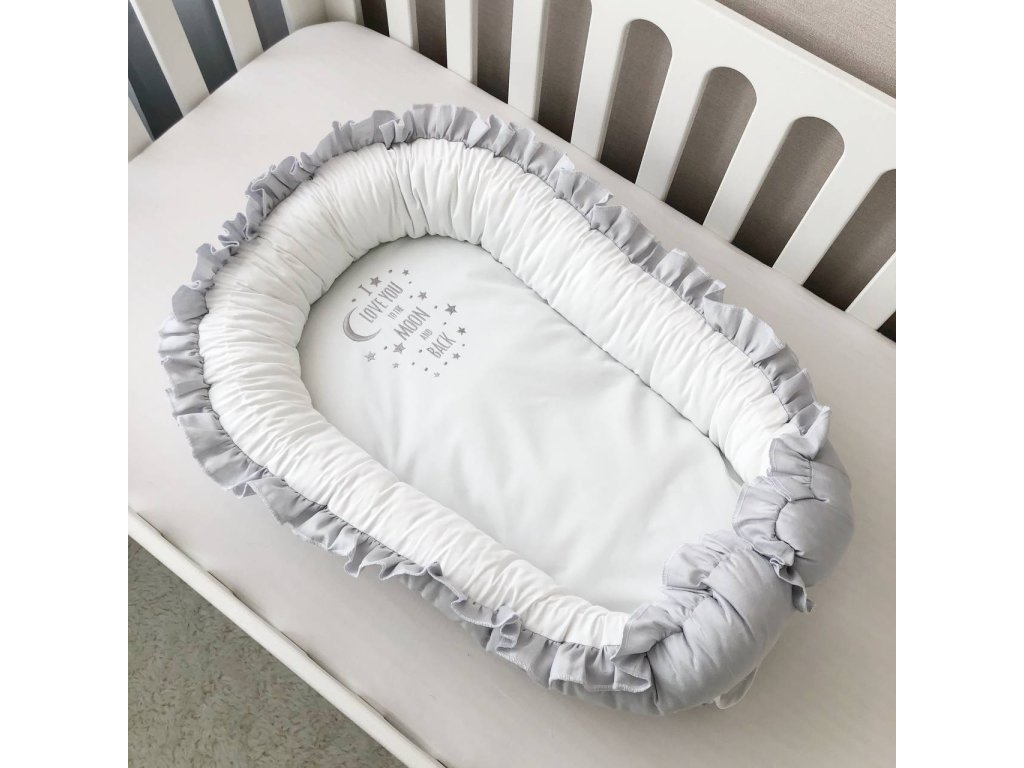 Naše hnízdo s volanem je ideálním místem pro vaše miminko, navržené pro maximální pohodlí a bezpečí. Díky promyšlenému tvaru a měkké výplni poskytuje útulný a chráněný prostor, který pomáhá dítěti cítit se klidně, jako by bylo v maminčině náručí.