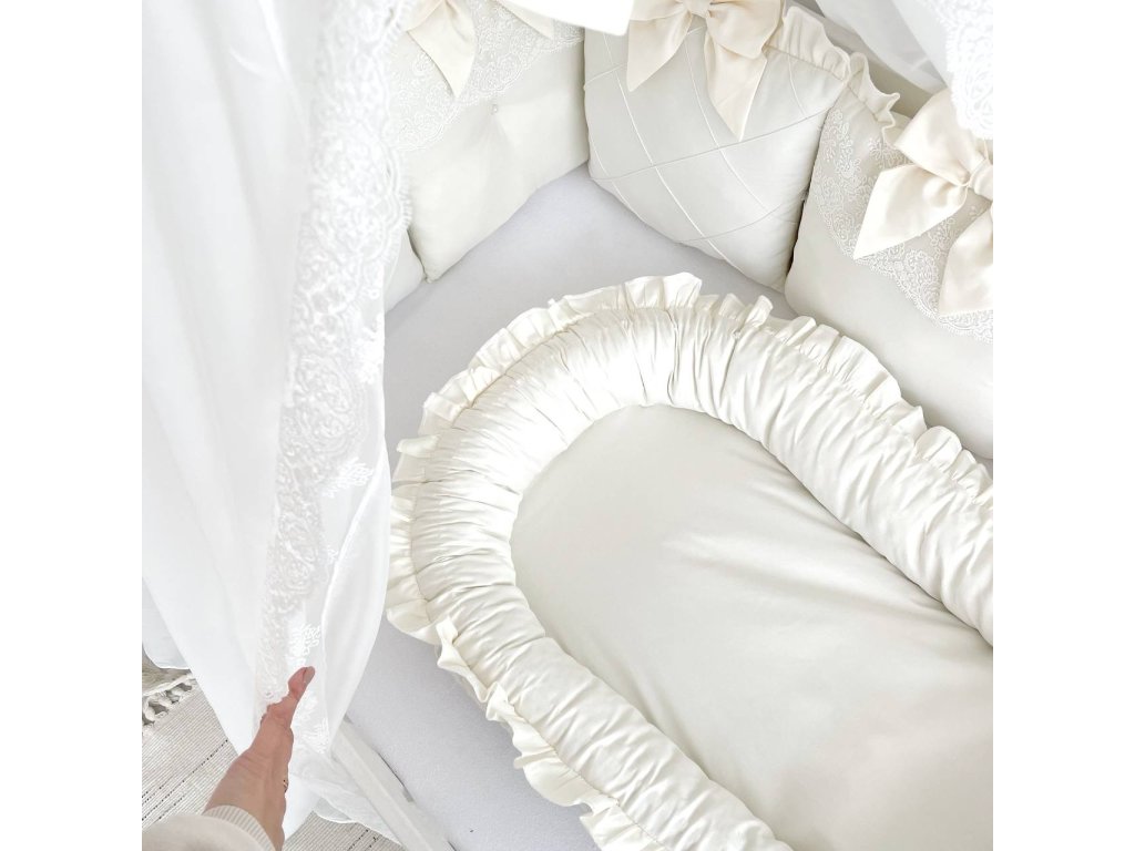 Naše hnízdo s volanem je ideálním místem pro vaše miminko, navržené pro maximální pohodlí a bezpečí. Díky promyšlenému tvaru a měkké výplni poskytuje útulný a chráněný prostor, který pomáhá dítěti cítit se klidně, jako by bylo v maminčině náručí.