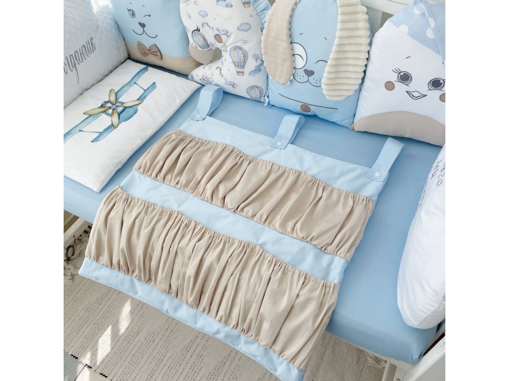 Každý detail je promyšlený s ohledem na maximální funkčnost a estetiku. Organizér lze snadno připevnit k postýlce nebo komodě, díky čemuž máte vše důležité vždy po ruce.