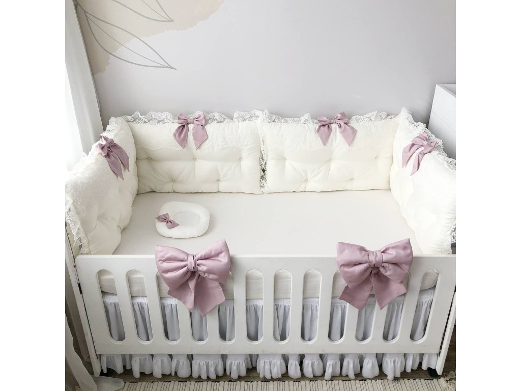 Konstrukce a design: Mantinely se skládají z několika samostatných sekcí (4 ks), které se snadno upevňují po obvodu postýlky pomocí pohodlných šňůrek. To umožňuje pevné připevnění mantinelů a zabraňuje jejich posunutí. K dispozici je široká škála barev a vzorů, což umožňuje vybrat model vhodný do jakéhokoli interiéru dětského pokoje.