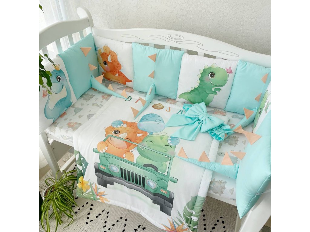 Konstrukce a design: Mantinel se skládají z polštaře (8 ks) o rozměrech 30x30 (postylka 120x60) a 35x30 (postylka 140x70), které se snadno upevňují po obvodu postýlky pomocí pohodlných šňůrek. Totp umožňuje pevné připevnění mantinelů a zabraňuje jejich posunutí. K dispozici je široká škála barev a vzorů, což umožňuje vybrat model vhodný do jakéhokoli interiéru dětského pokoje.