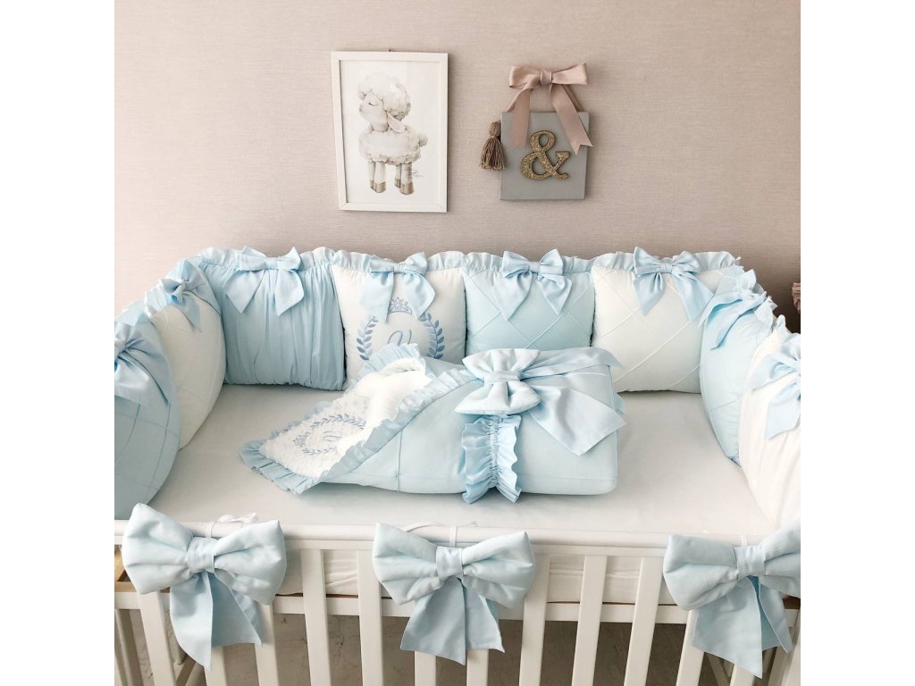Konstrukce a design: Mantinel se skládají z polštaře (8 ks) o rozměrech 30x30 (postylka 120x60) a 35x30 (postylka 140x70), které se snadno upevňují po obvodu postýlky pomocí pohodlných šňůrek. Totp umožňuje pevné připevnění mantinelů a zabraňuje jejich posunutí. K dispozici je široká škála barev a vzorů, což umožňuje vybrat model vhodný do jakéhokoli interiéru dětského pokoje.