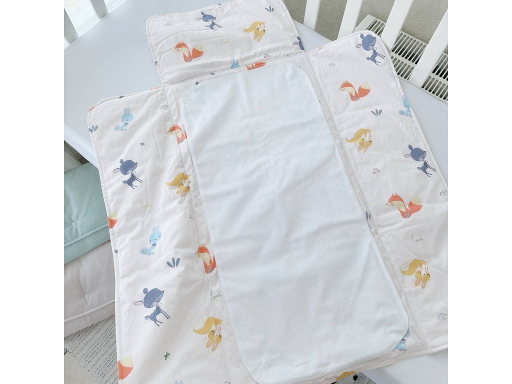 Materiály: 100% bavlněný saten s certifikací Oeko-Tex standard 100. Nepromokavá a snadno omyvatelná plenka na knoflíky.