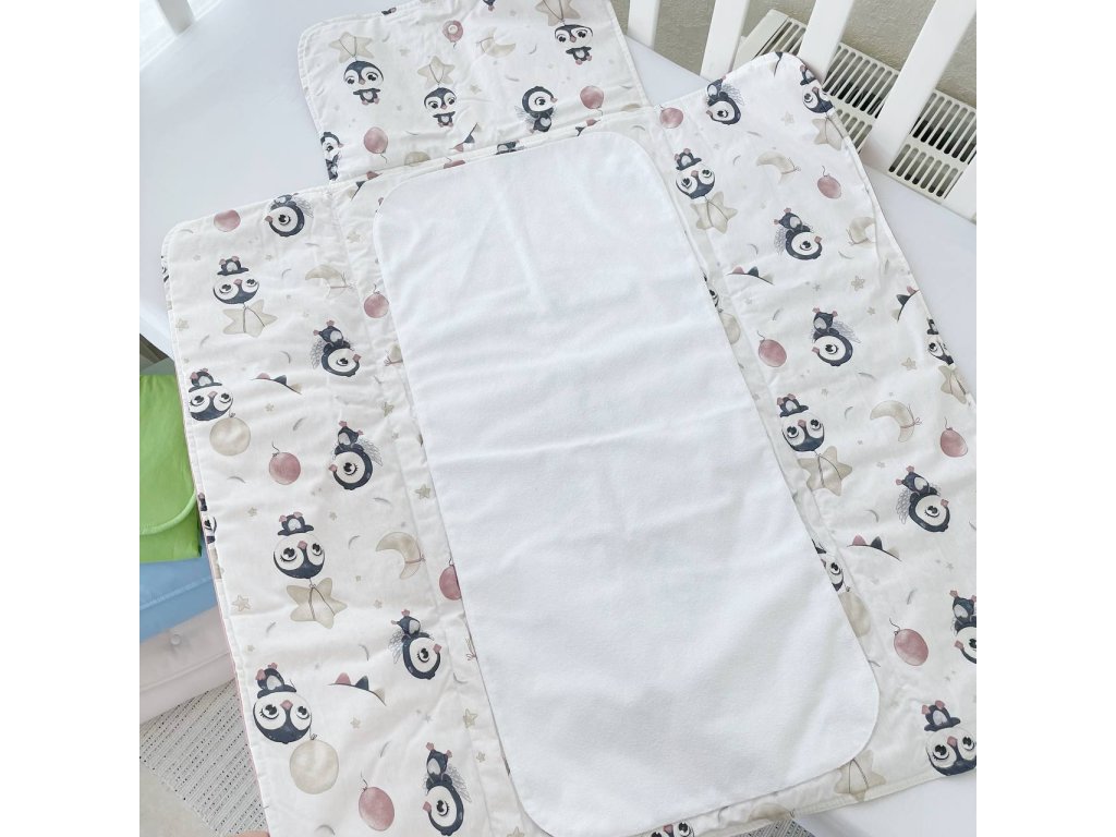 Materiály: 100% bavlněný saten s certifikací Oeko-Tex standard 100. Nepromokavá a snadno omyvatelná plenka na knoflíky.