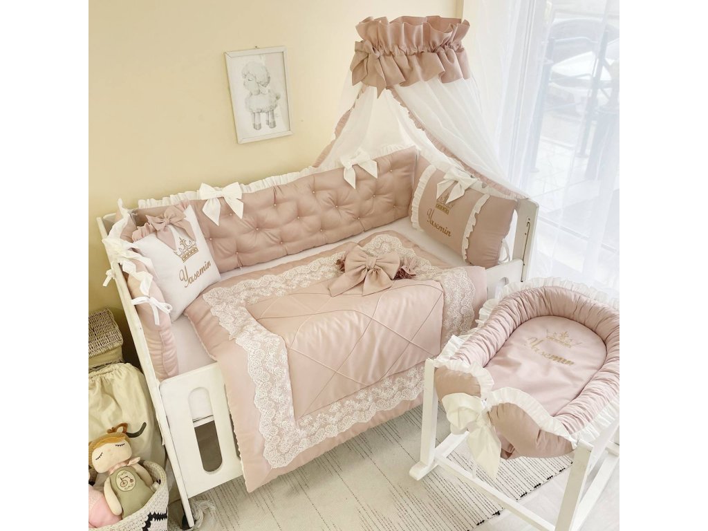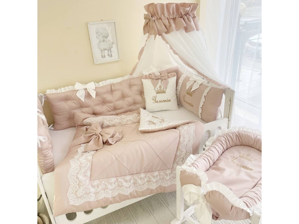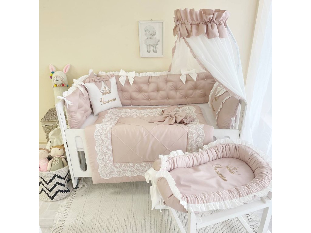 Design sady je promyšlen do nejmenších detailů: od barevné palety, která ladí s jakýmkoli interiérem, po elegantní detaily, které postýlce dodávají nádech elegance. Zvláštní pozornost byla věnována bezpečnosti: mantinely spolehlivě chrání dítě před průvanem a zároveň zabraňují nárazům o stěny postýlky.