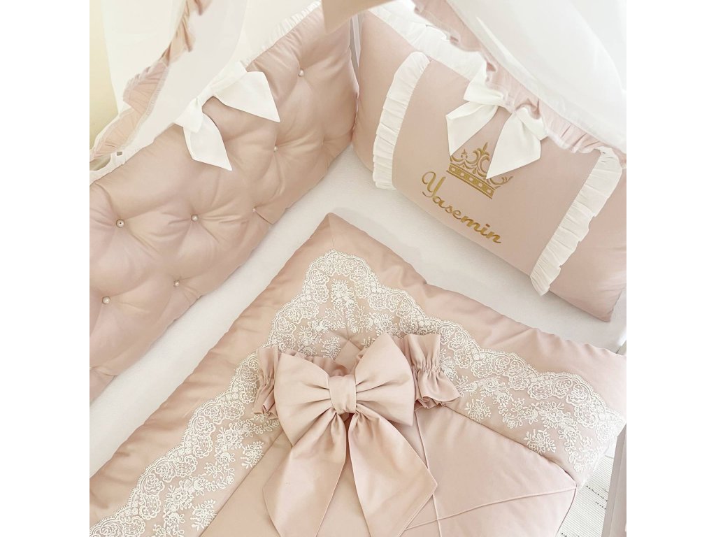 Prémiová souprava do postýlky pro holčičku - Růžová s krajkou
