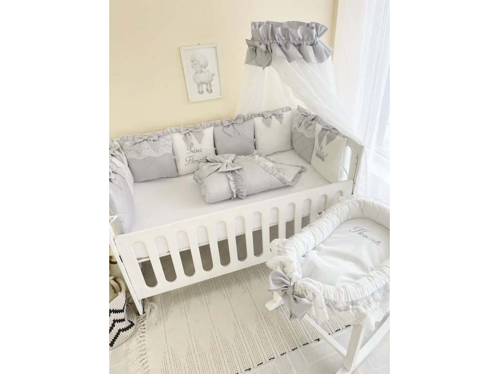 Design sady je promyšlen do nejmenších detailů: od barevné palety, která ladí s jakýmkoli interiérem, po elegantní detaily, které postýlce dodávají nádech elegance. Zvláštní pozornost byla věnována bezpečnosti: mantinely spolehlivě chrání dítě před průvanem a zároveň zabraňují nárazům o stěny postýlky.