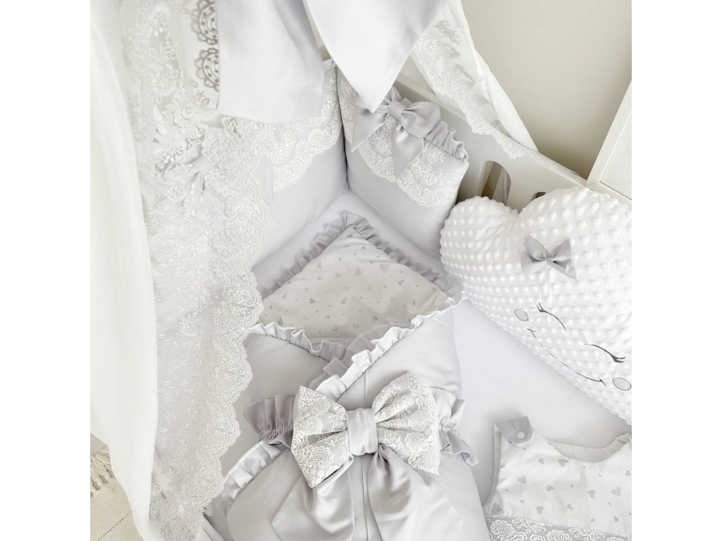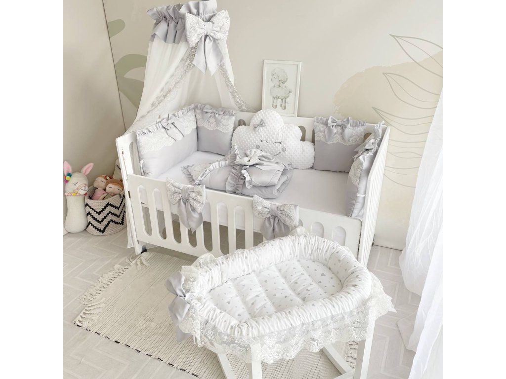 Design sady je promyšlen do nejmenších detailů: od barevné palety, která ladí s jakýmkoli interiérem, po elegantní detaily, které postýlce dodávají nádech elegance. Zvláštní pozornost byla věnována bezpečnosti: mantinely spolehlivě chrání dítě před průvanem a zároveň zabraňují nárazům o stěny postýlky.