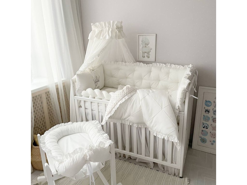 Design sady je promyšlen do nejmenších detailů: od barevné palety, která ladí s jakýmkoli interiérem, po elegantní detaily, které postýlce dodávají nádech elegance. Zvláštní pozornost byla věnována bezpečnosti: mantinely spolehlivě chrání dítě před průvanem a zároveň zabraňují nárazům o stěny postýlky.