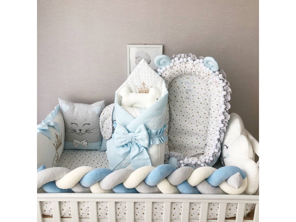 Design sady je promyšlen do nejmenších detailů: od barevné palety, která ladí s jakýmkoli interiérem, po elegantní detaily, které postýlce dodávají nádech elegance. Zvláštní pozornost byla věnována bezpečnosti: mantinely spolehlivě chrání dítě před průvanem a zároveň zabraňují nárazům o stěny postýlky.