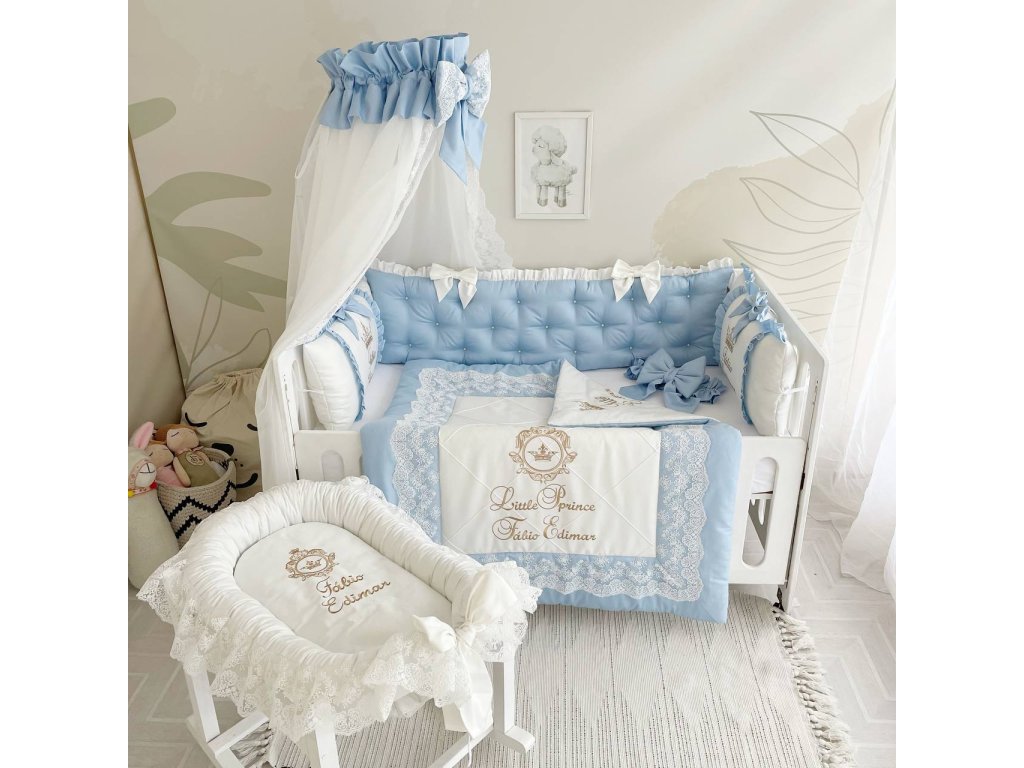 Design sady je promyšlen do nejmenších detailů: od barevné palety, která ladí s jakýmkoli interiérem, po elegantní detaily, které postýlce dodávají nádech elegance. Zvláštní pozornost byla věnována bezpečnosti: mantinely spolehlivě chrání dítě před průvanem a zároveň zabraňují nárazům o stěny postýlky.
