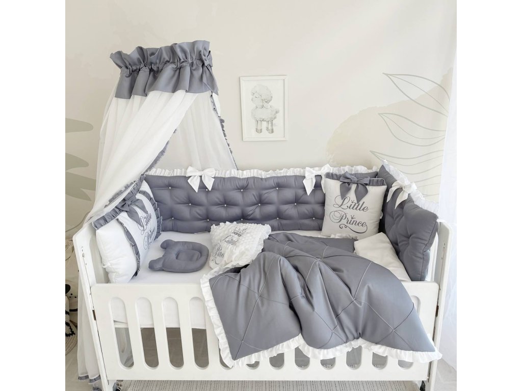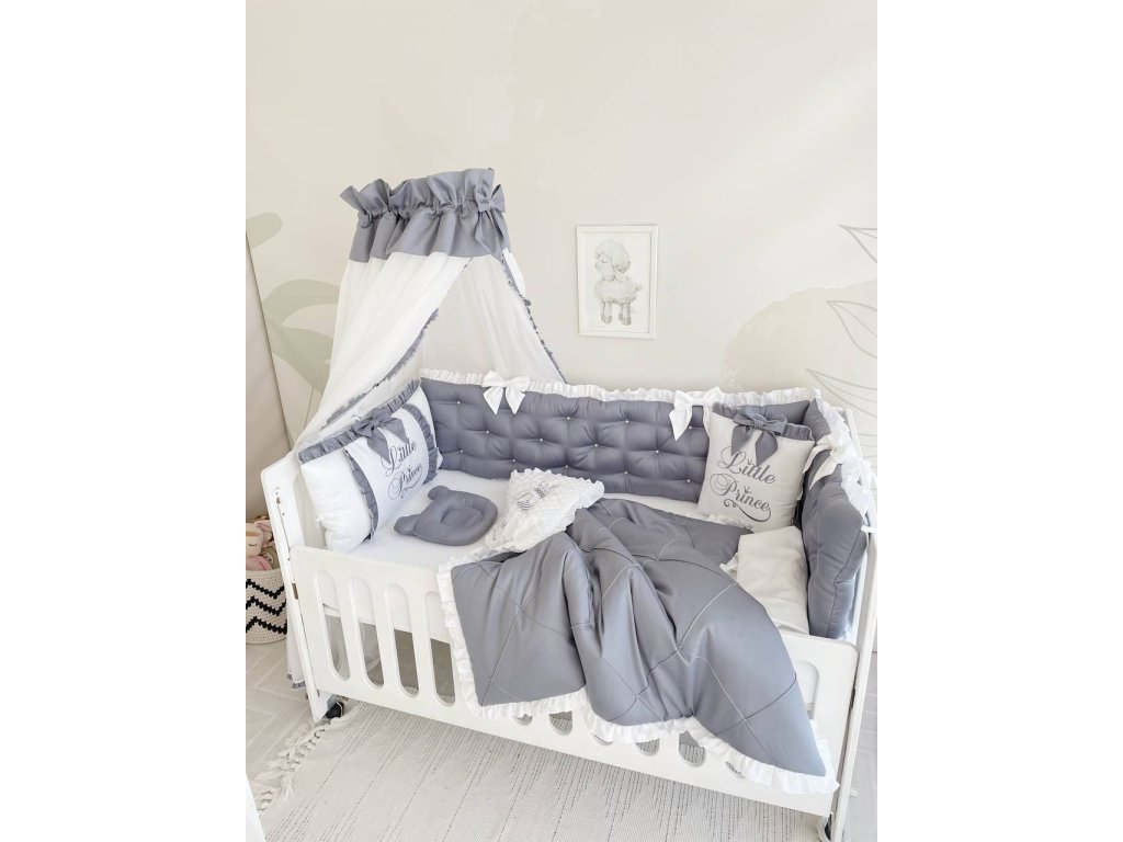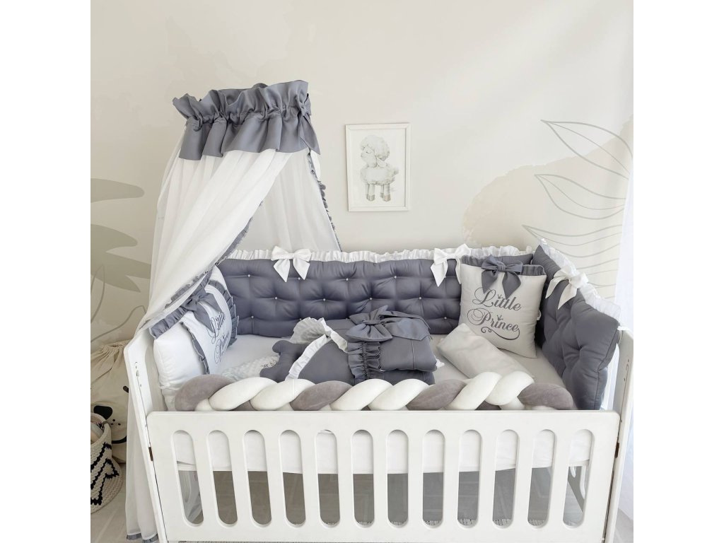 Design sady je promyšlen do nejmenších detailů: od barevné palety, která ladí s jakýmkoli interiérem, po elegantní detaily, které postýlce dodávají nádech elegance. Zvláštní pozornost byla věnována bezpečnosti: mantinely spolehlivě chrání dítě před průvanem a zároveň zabraňují nárazům o stěny postýlky.