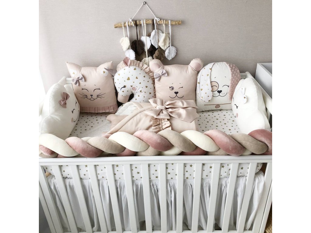 Design sady je promyšlen do nejmenších detailů: od barevné palety, která ladí s jakýmkoli interiérem, po elegantní detaily, které postýlce dodávají nádech elegance. Zvláštní pozornost byla věnována bezpečnosti: mantinely spolehlivě chrání dítě před průvanem a zároveň zabraňují nárazům o stěny postýlky.
