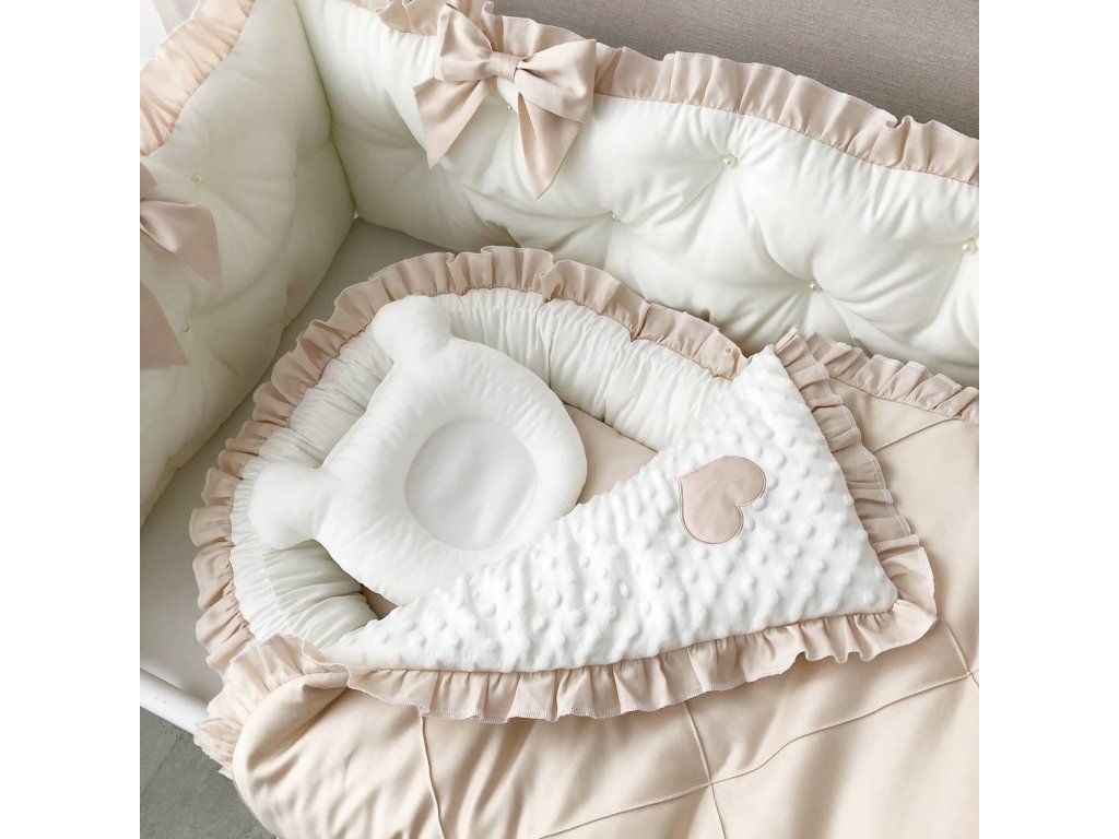 Design sady je promyšlen do nejmenších detailů: od barevné palety, která ladí s jakýmkoli interiérem, po elegantní detaily, které postýlce dodávají nádech elegance. Zvláštní pozornost byla věnována bezpečnosti: mantinely spolehlivě chrání dítě před průvanem a zároveň zabraňují nárazům o stěny postýlky.