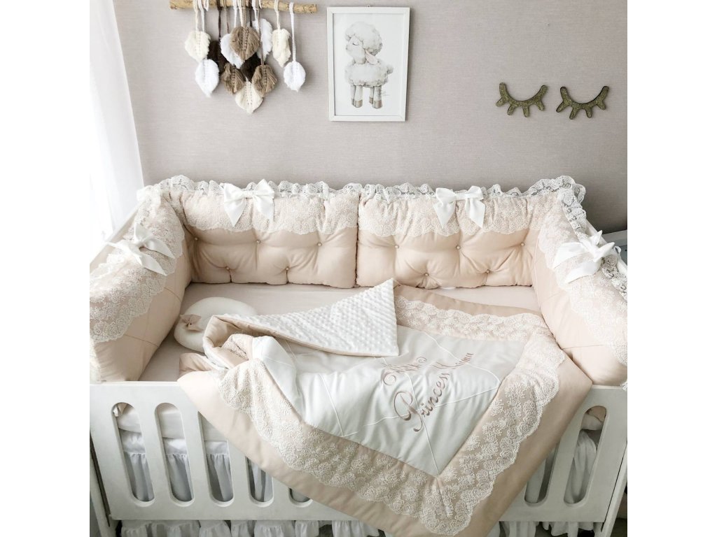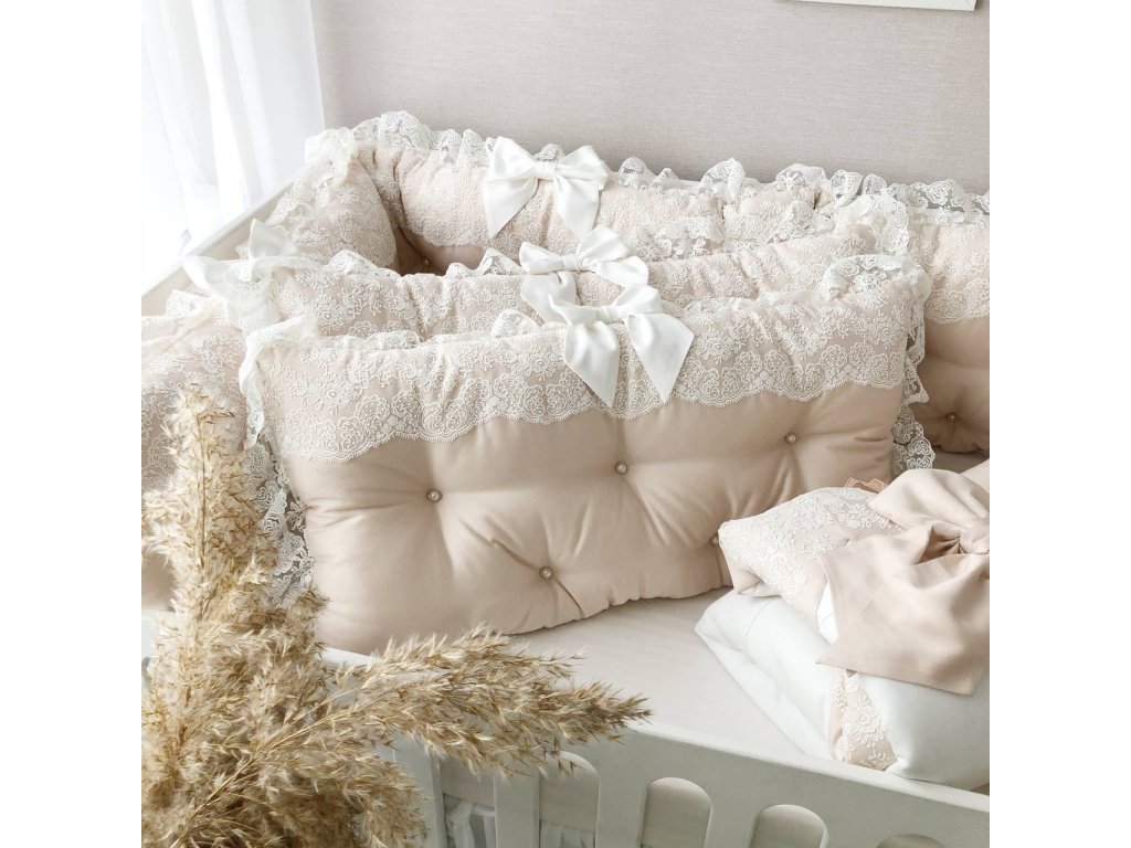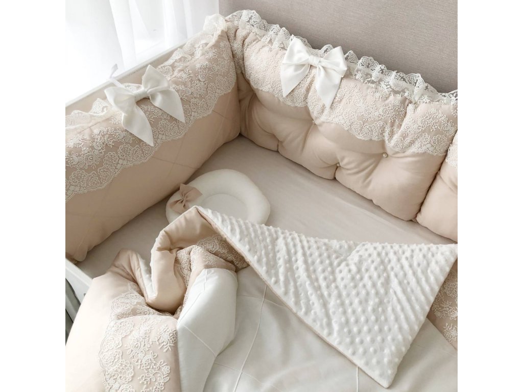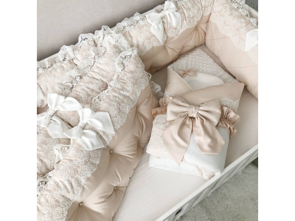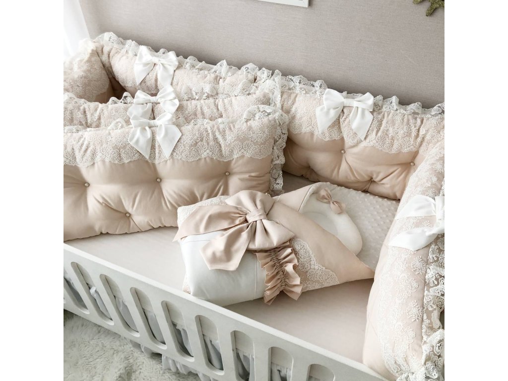 Design sady je promyšlen do nejmenších detailů: od barevné palety, která ladí s jakýmkoli interiérem, po elegantní detaily, které postýlce dodávají nádech elegance. Zvláštní pozornost byla věnována bezpečnosti: mantinely spolehlivě chrání dítě před průvanem a zároveň zabraňují nárazům o stěny postýlky.