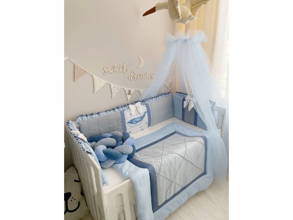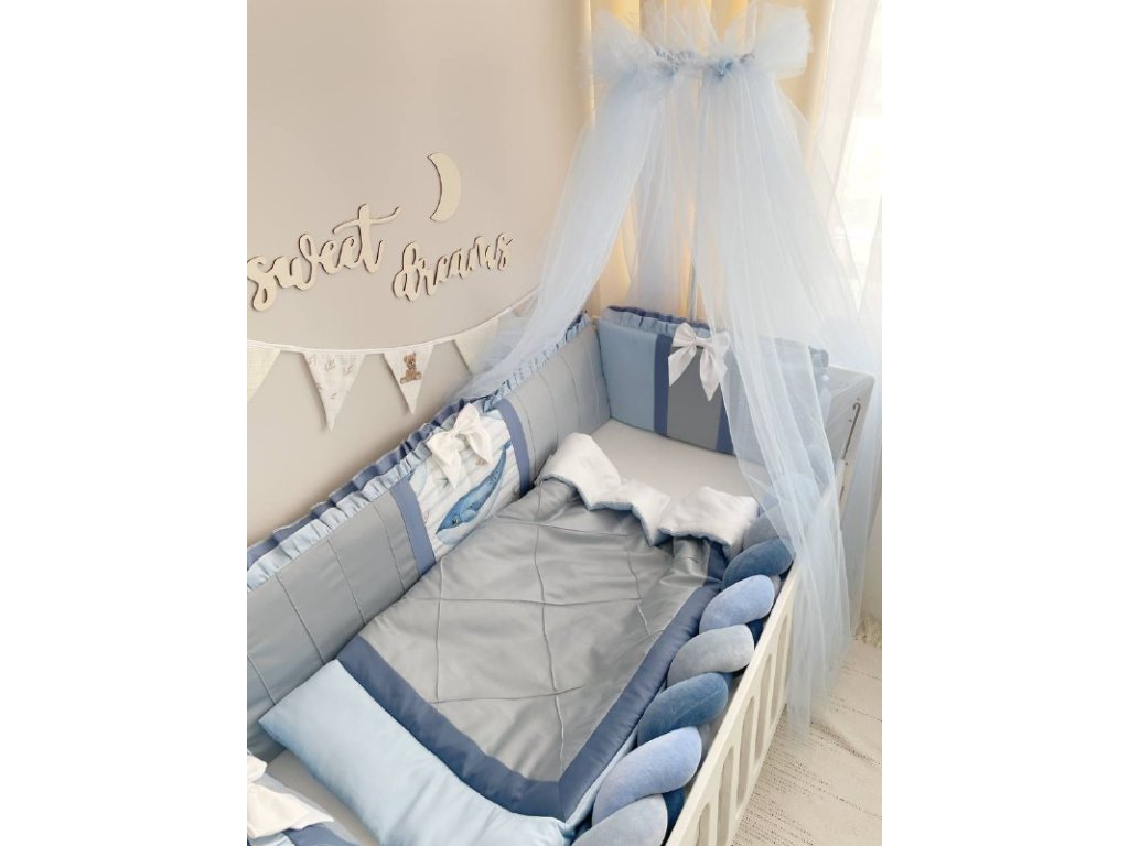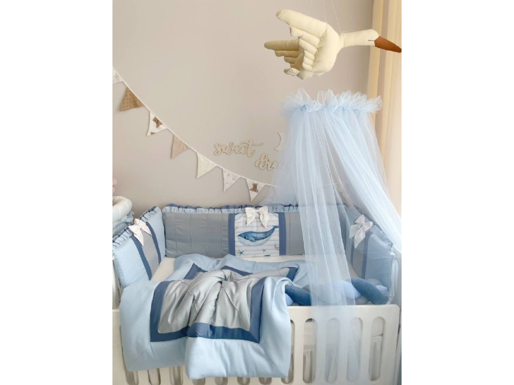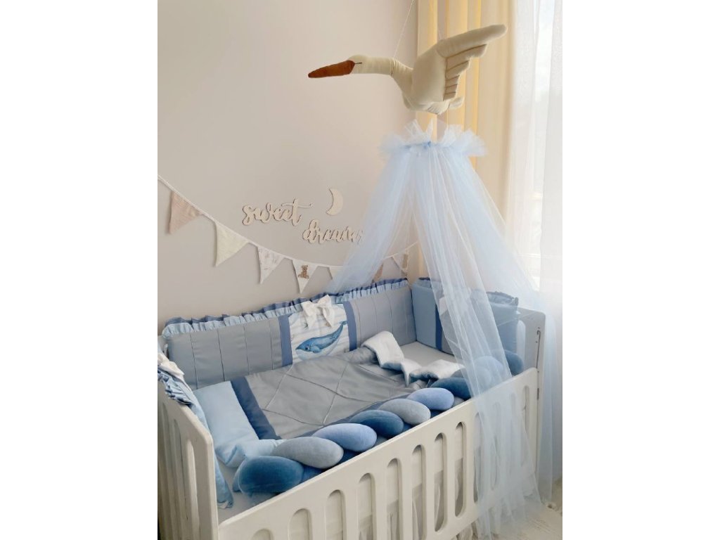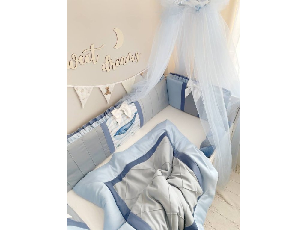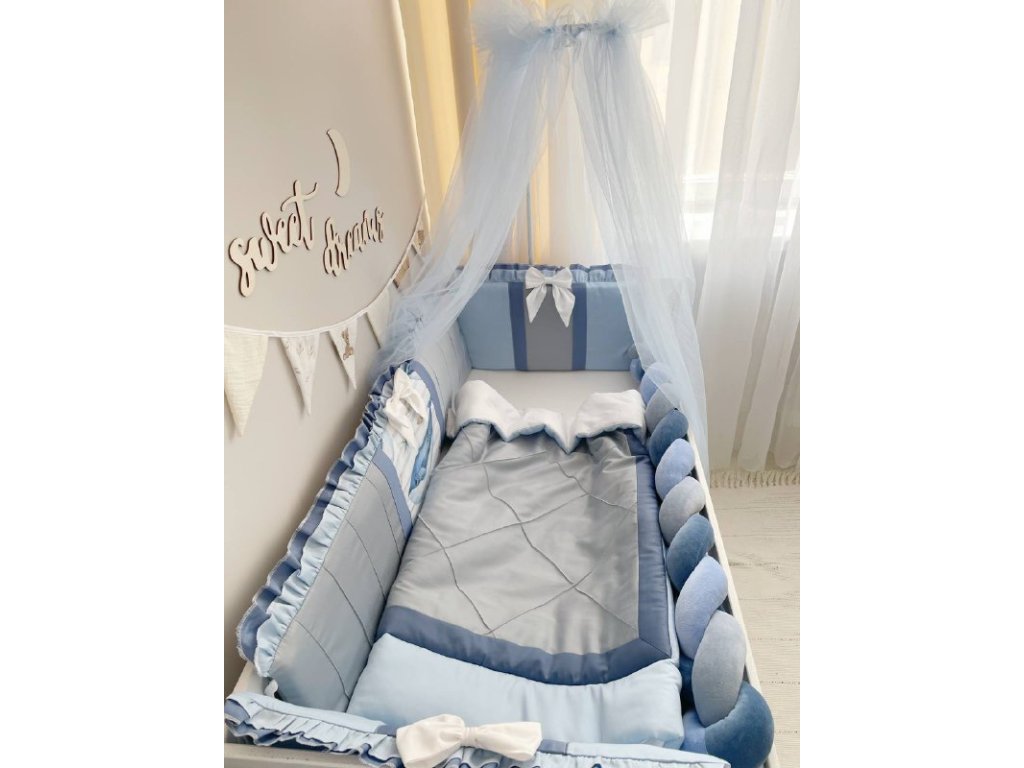 Design sady je promyšlen do nejmenších detailů: od barevné palety, která ladí s jakýmkoli interiérem, po elegantní detaily, které postýlce dodávají nádech elegance. Zvláštní pozornost byla věnována bezpečnosti: mantinely spolehlivě chrání dítě před průvanem a zároveň zabraňují nárazům o stěny postýlky. Mantinely mají navíc snímatelné potahy, což usnadňuje jejich čištění.