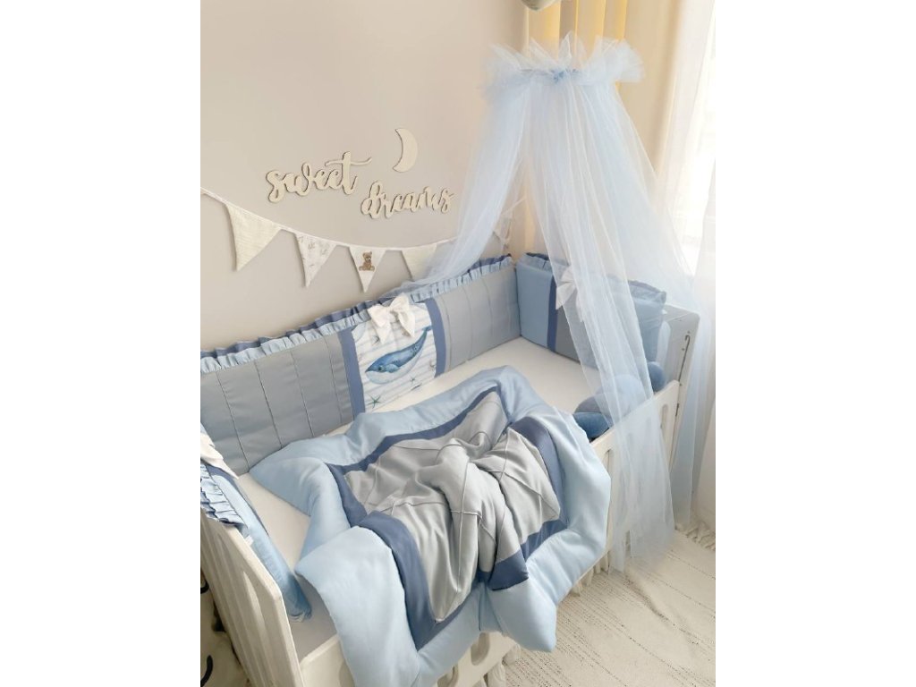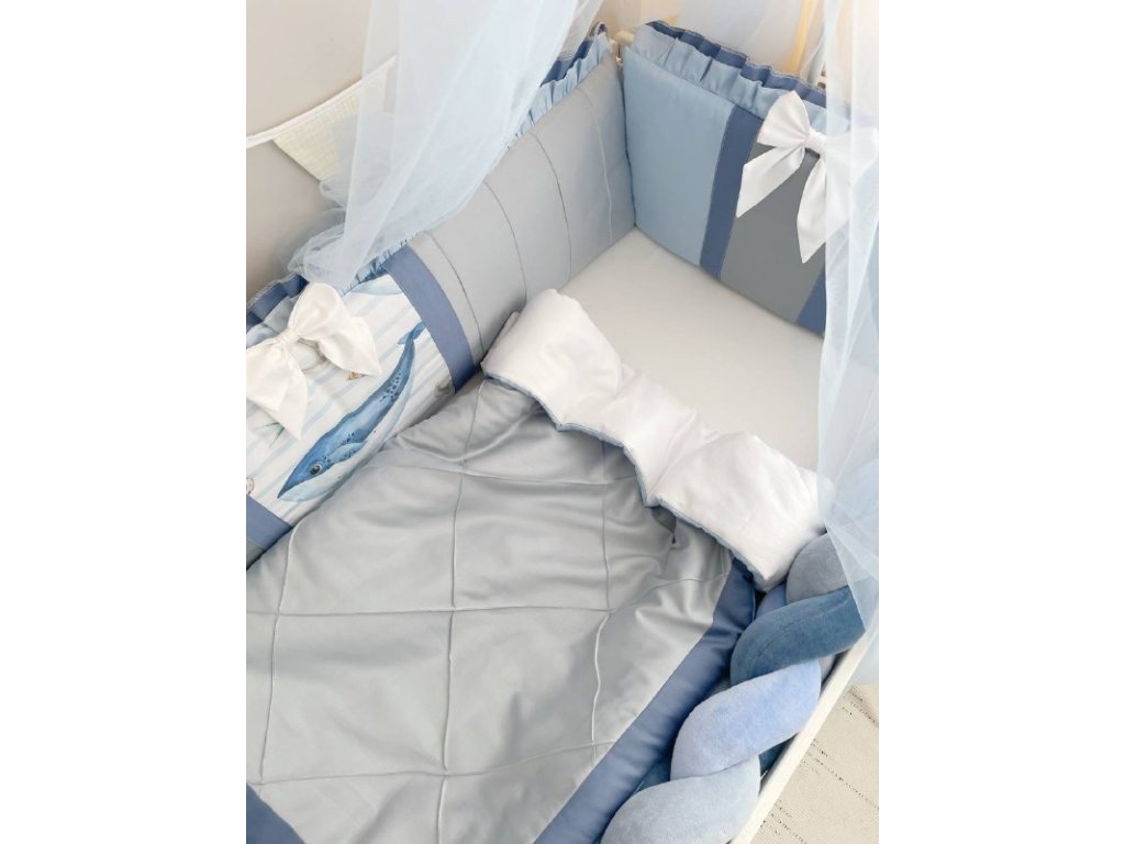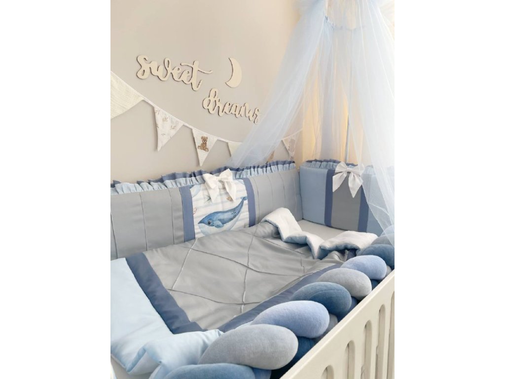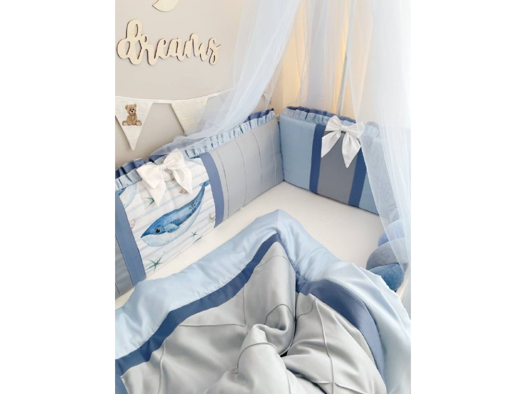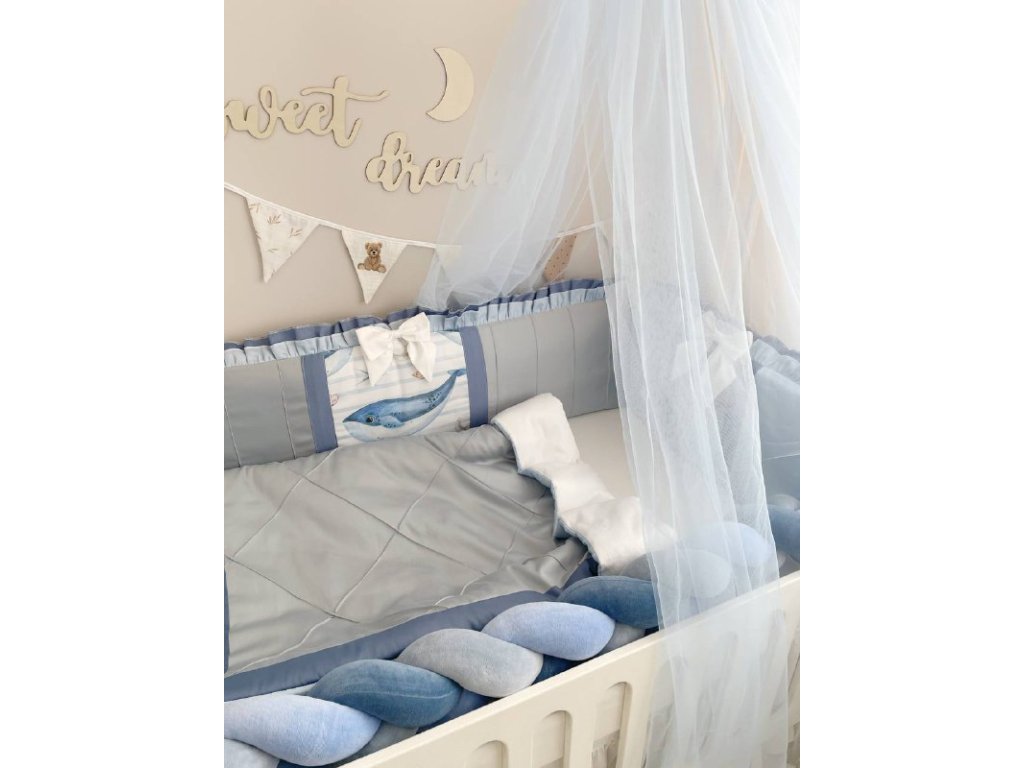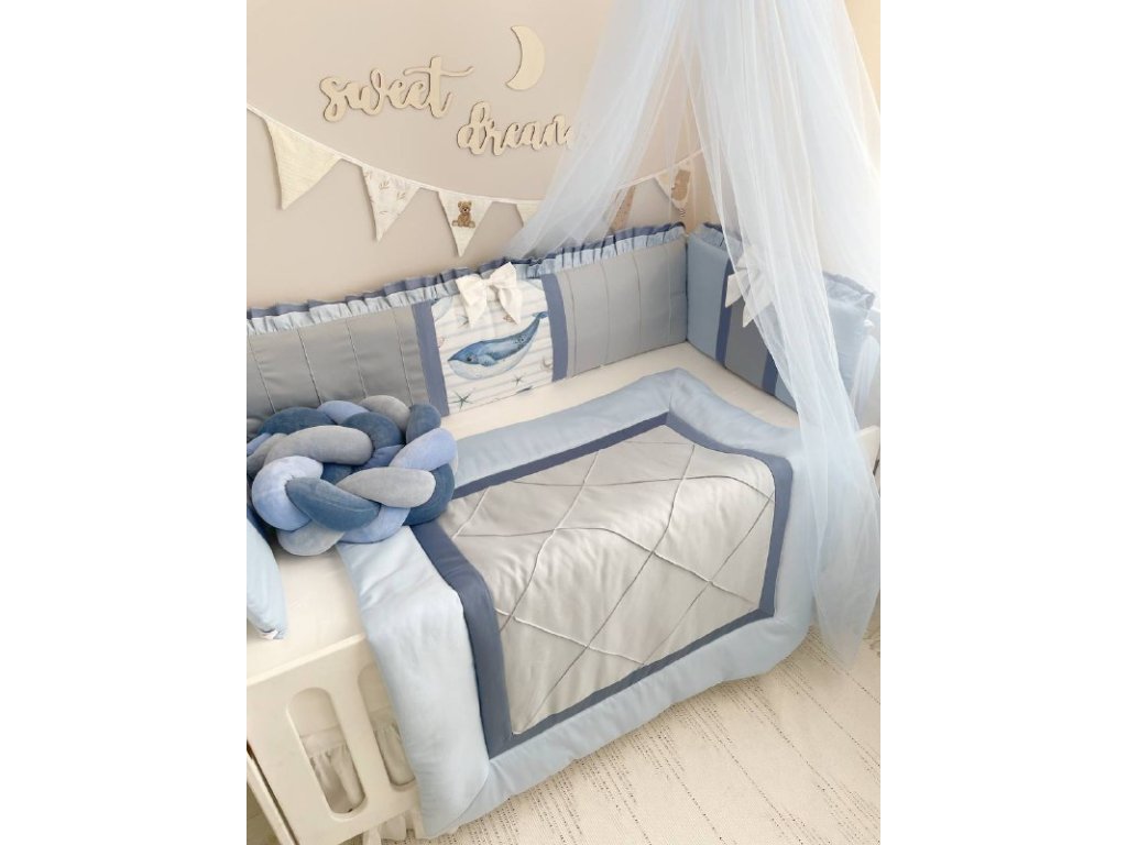 Design sady je promyšlen do nejmenších detailů: od barevné palety, která ladí s jakýmkoli interiérem, po elegantní detaily, které postýlce dodávají nádech elegance. Zvláštní pozornost byla věnována bezpečnosti: mantinely spolehlivě chrání dítě před průvanem a zároveň zabraňují nárazům o stěny postýlky. Mantinely mají navíc snímatelné potahy, což usnadňuje jejich čištění.