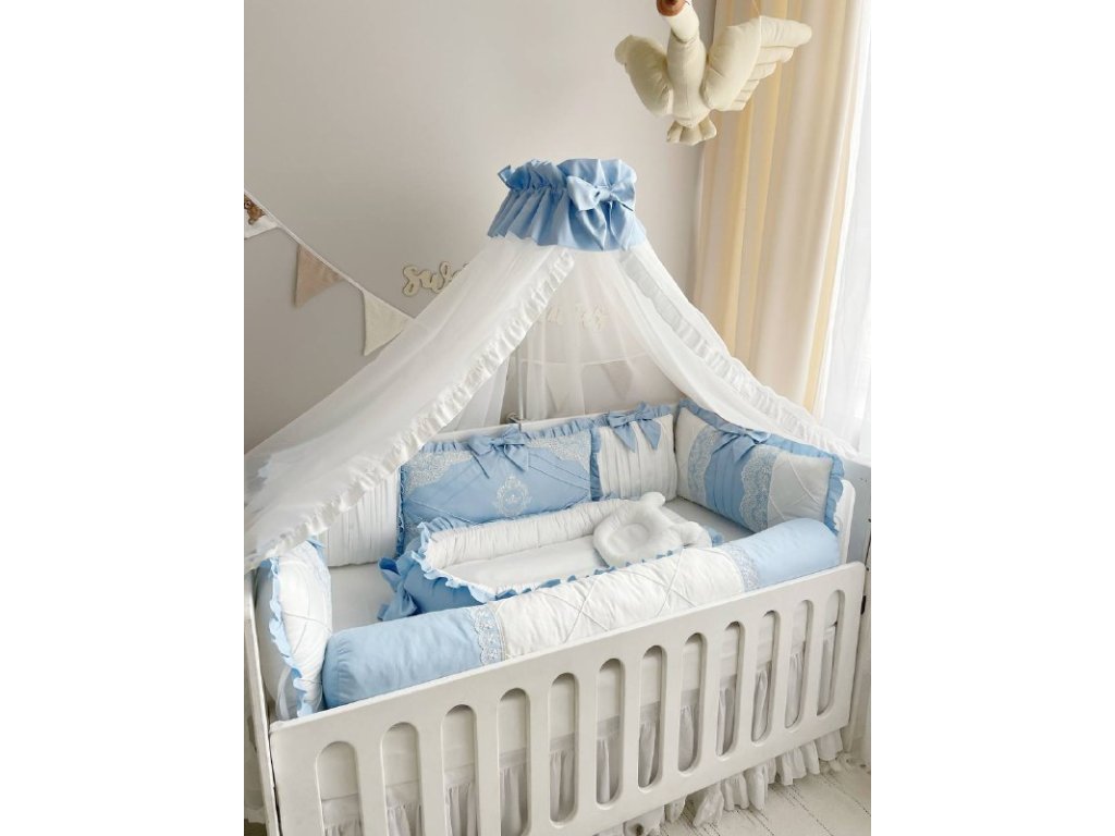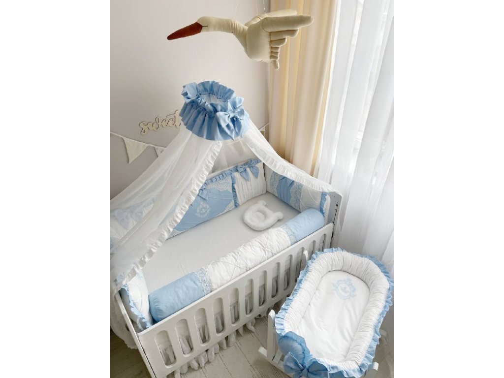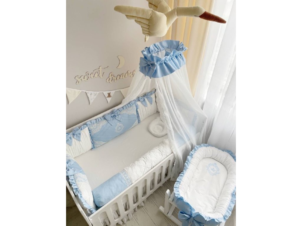 Design sady je promyšlen do nejmenších detailů: od barevné palety, která ladí s jakýmkoli interiérem, po elegantní detaily, které postýlce dodávají nádech elegance. Zvláštní pozornost byla věnována bezpečnosti: mantinely spolehlivě chrání dítě před průvanem a zároveň zabraňují nárazům o stěny postýlky.