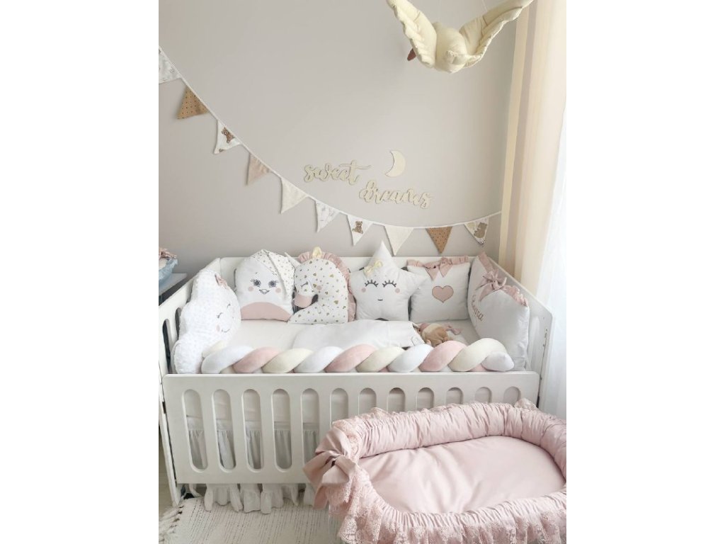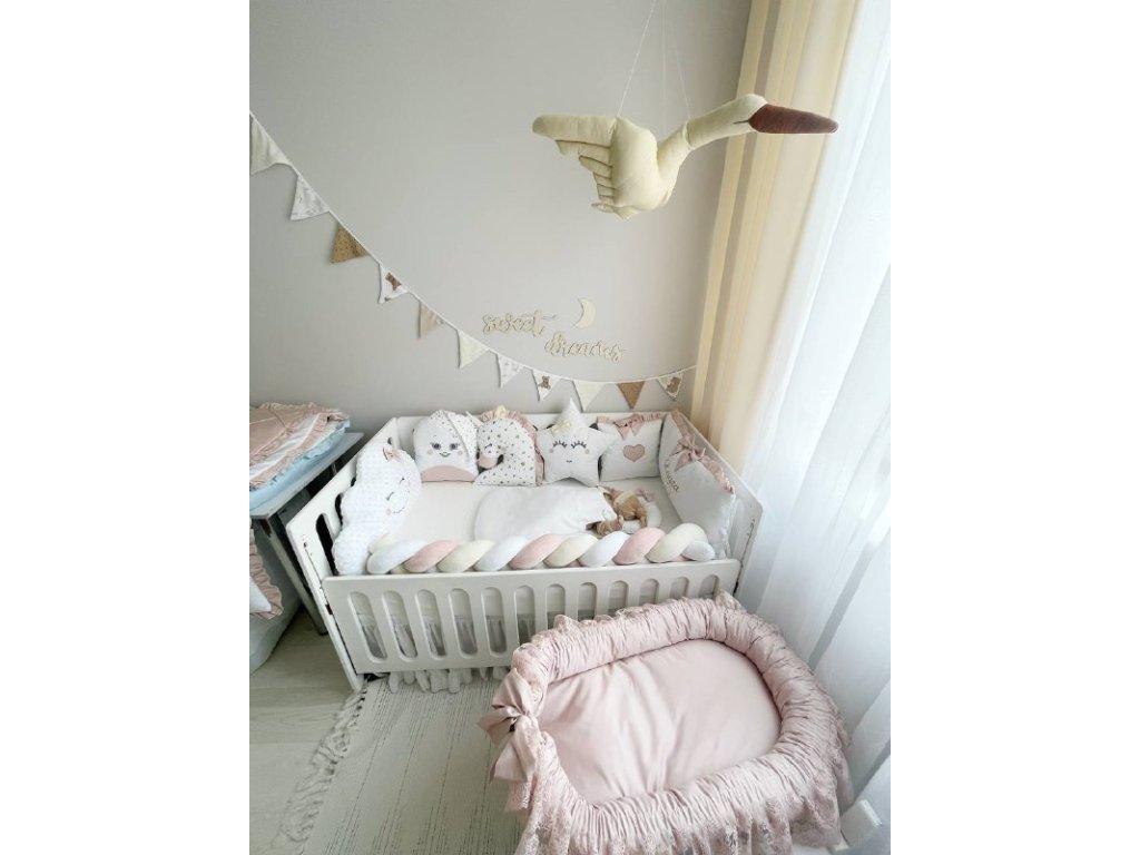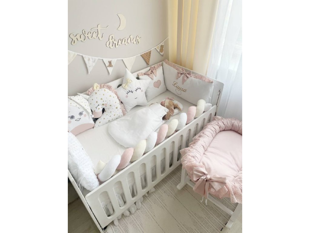 Design sady je promyšlen do nejmenších detailů: od barevné palety, která ladí s jakýmkoli interiérem, po elegantní detaily, které postýlce dodávají nádech elegance. Zvláštní pozornost byla věnována bezpečnosti: mantinely spolehlivě chrání dítě před průvanem a zároveň zabraňují nárazům o stěny postýlky.