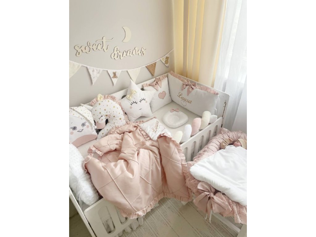 Prémiová souprava od Mommylove je dokonalou kombinací luxusu, pohodlí a bezpečí pro vaše dítě. Je vyrobena pouze z těch nejlepších, ekologicky šetrných materiálů, které jsou hypoalergenní a zajišťují zdravé prostředí v dětské postýlce.