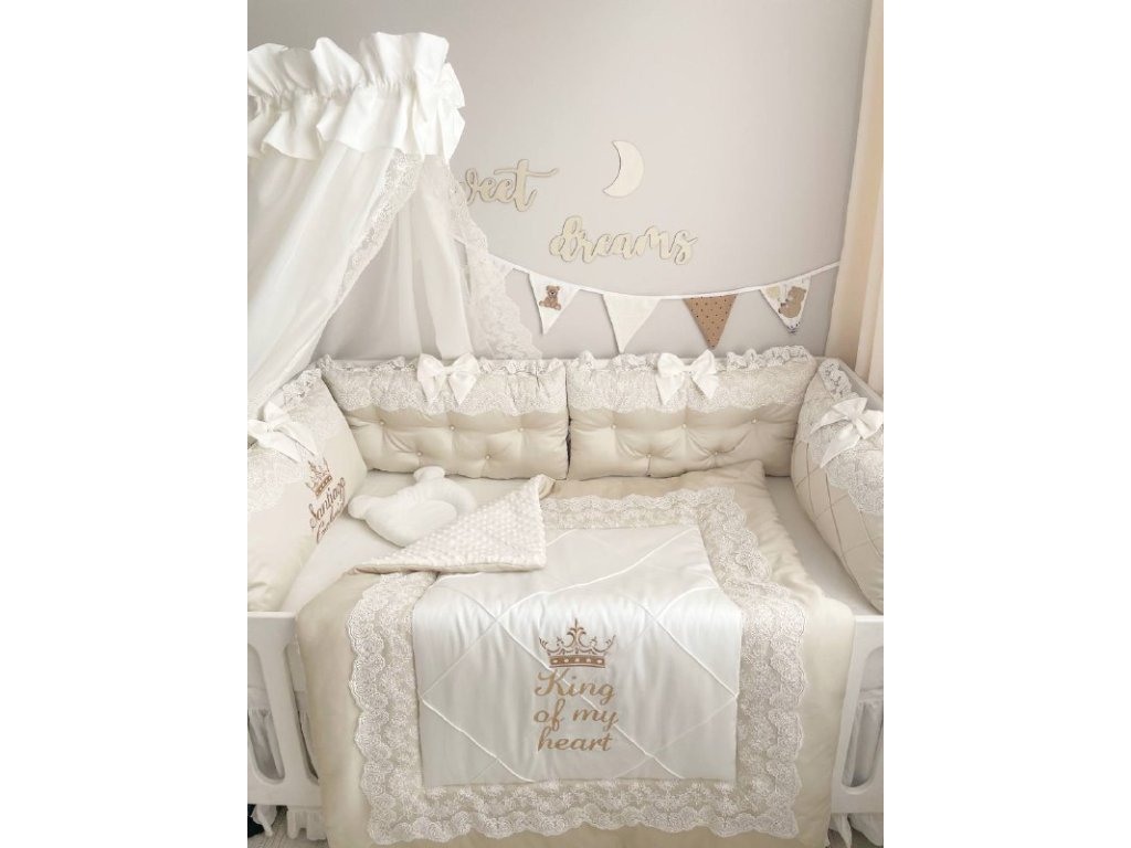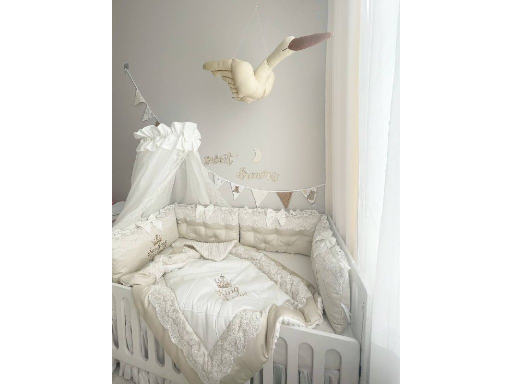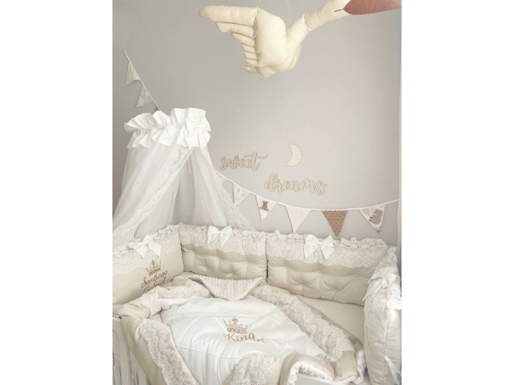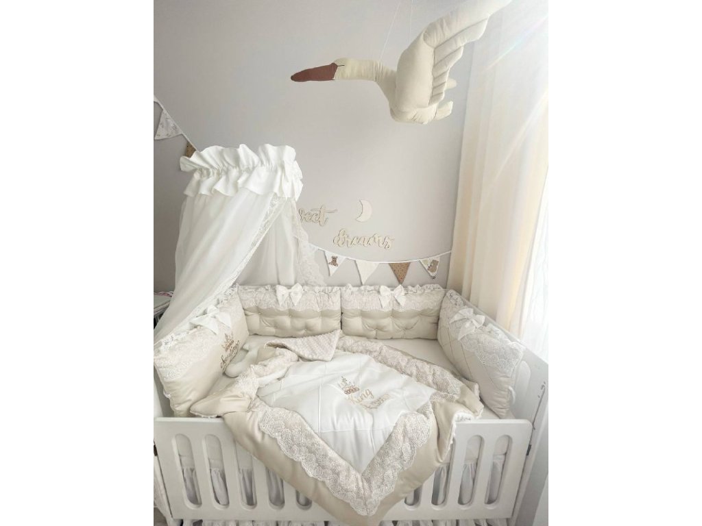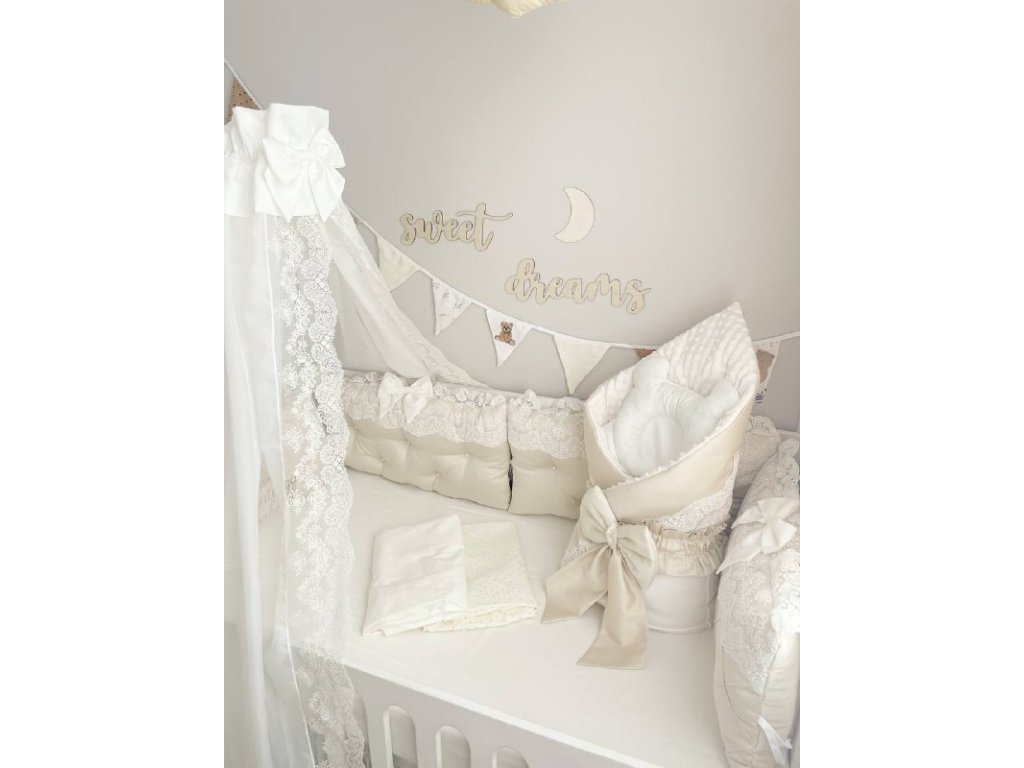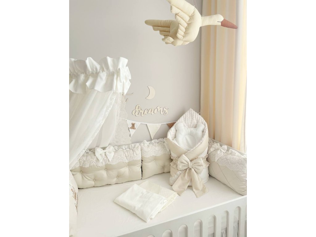 Design sady je promyšlen do nejmenších detailů: od barevné palety, která ladí s jakýmkoli interiérem, po elegantní detaily, které postýlce dodávají nádech elegance. Zvláštní pozornost byla věnována bezpečnosti: mantinely spolehlivě chrání dítě před průvanem a zároveň zabraňují nárazům o stěny postýlky.