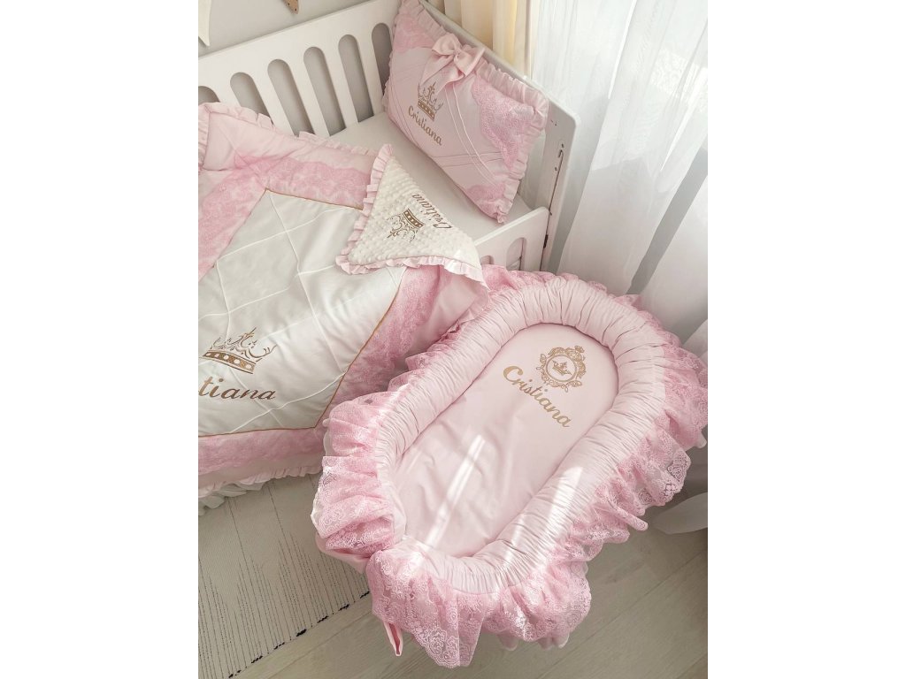 Design sady je promyšlen do nejmenších detailů: od barevné palety, která ladí s jakýmkoli interiérem, po elegantní detaily, které postýlce dodávají nádech elegance. Zvláštní pozornost byla věnována bezpečnosti: mantinely spolehlivě chrání dítě před průvanem a zároveň zabraňují nárazům o stěny postýlky.