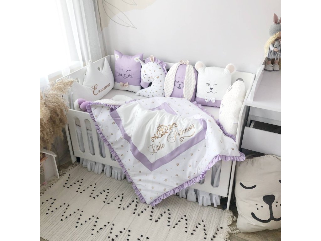 Design sady je promyšlen do nejmenších detailů: od barevné palety, která ladí s jakýmkoli interiérem, po elegantní detaily, které postýlce dodávají nádech elegance. Zvláštní pozornost byla věnována bezpečnosti: mantinely spolehlivě chrání dítě před průvanem a zároveň zabraňují nárazům o stěny postýlky.