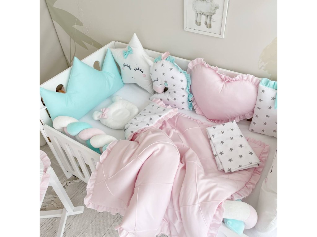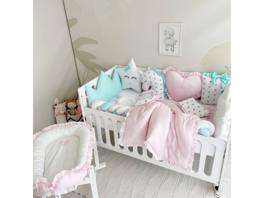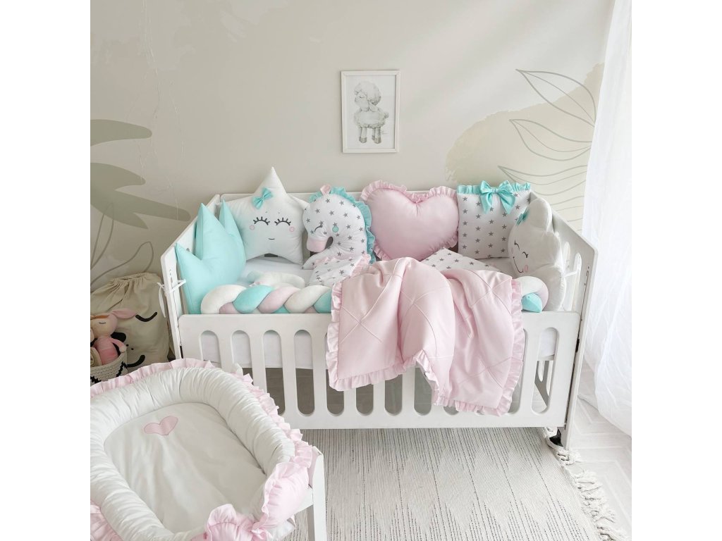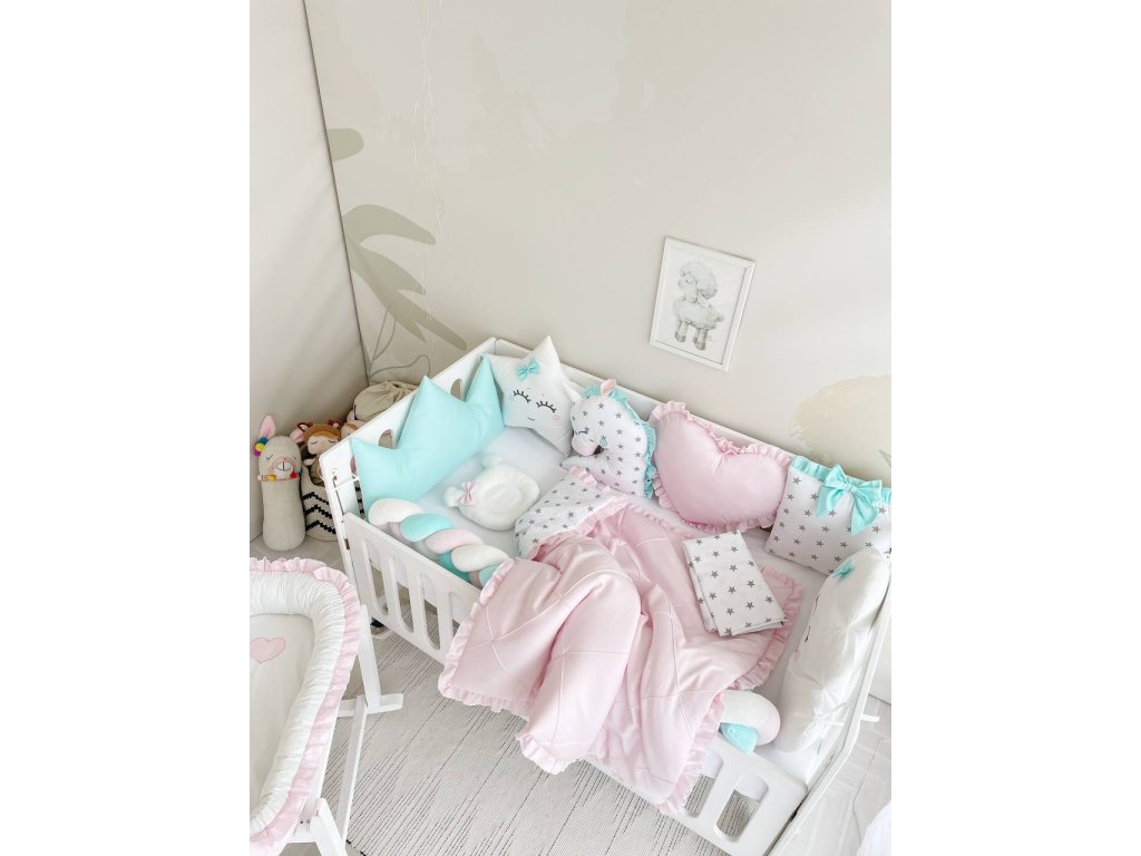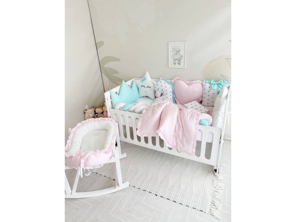 Souprava od Mommylove je dokonalou kombinací luxusu, pohodlí a bezpečí pro vaše dítě. Je vyrobena pouze z těch nejlepších, ekologicky šetrných materiálů, které jsou hypoalergenní a zajišťují zdravé prostředí v dětské postýlce.